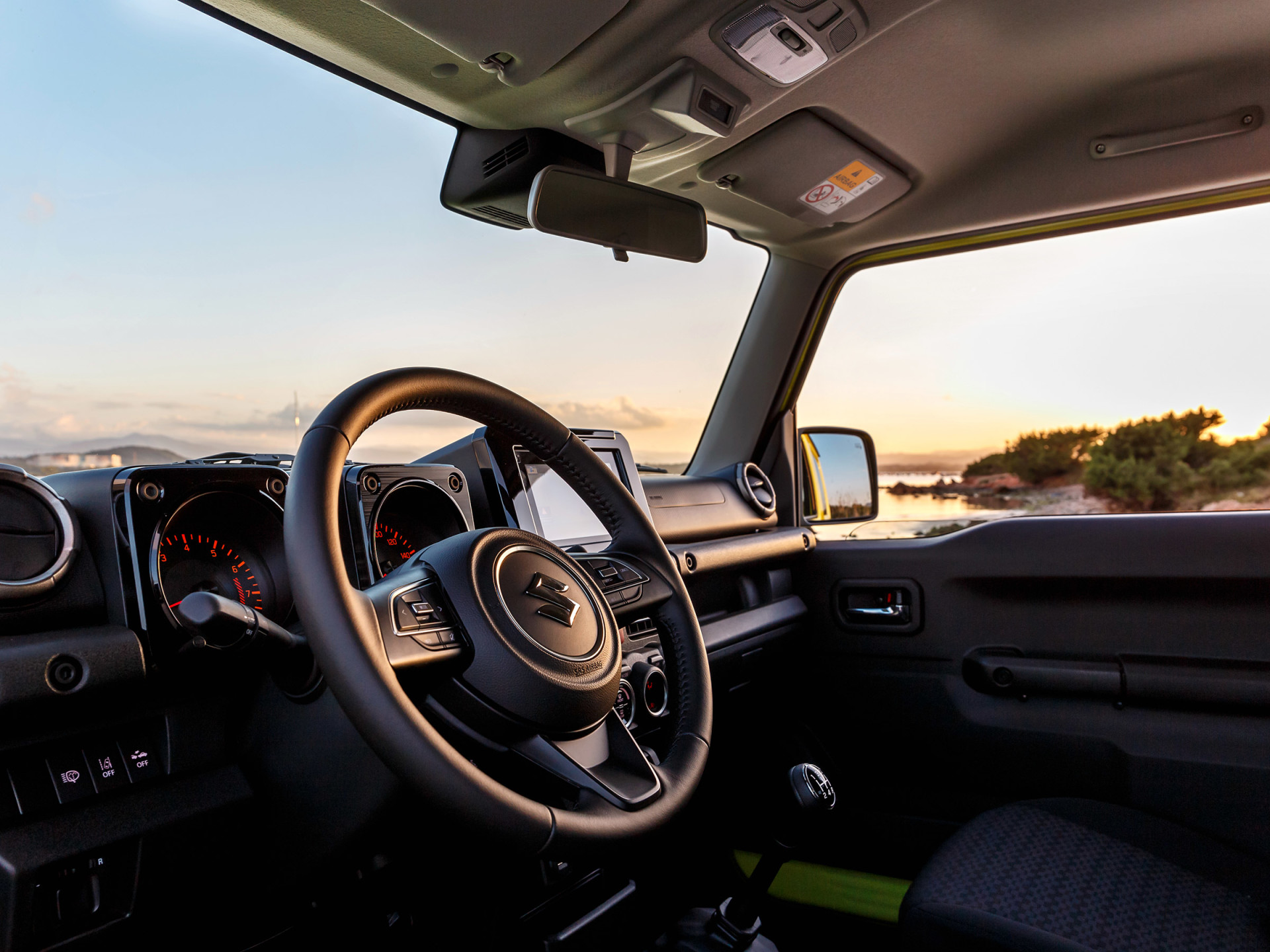 Салон внедорожника Suzuki Jimny определенно понравится любителям минимализма. Ведь в духе минимализма и практичности выполнен интерьер автомобиля. В салоне не найти каких либо нестандартных решений или лишних и ненужных кнопок. Только самое необходимое.